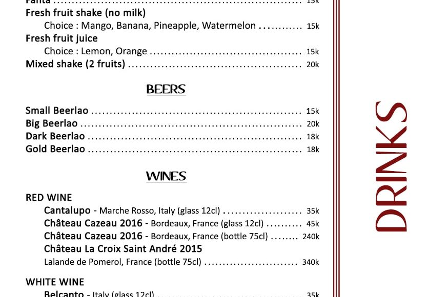 -프론트 테라스(FRONT TERRACE) : 4인용 2개의 테이블이 있습니다. 메콩강을 조망할수 있습니다.