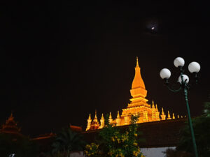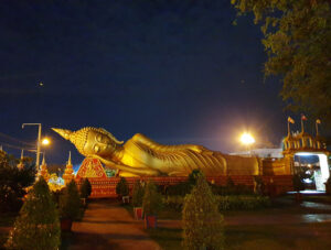19:20 탓루앙 야경 (탓루앙 광장에서 황금탑을 배경으로 사진을 찍어보세요~) + 왓탓루앙따이 (황금색 와불상)